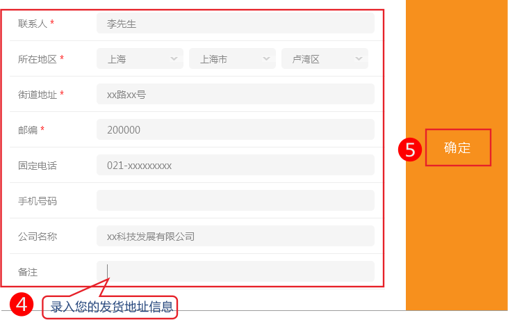 2.填写地址库中的联系人、所在地区、街道地址、邮政编码、手机号码、公司名称等内容。最后记得保存哦。