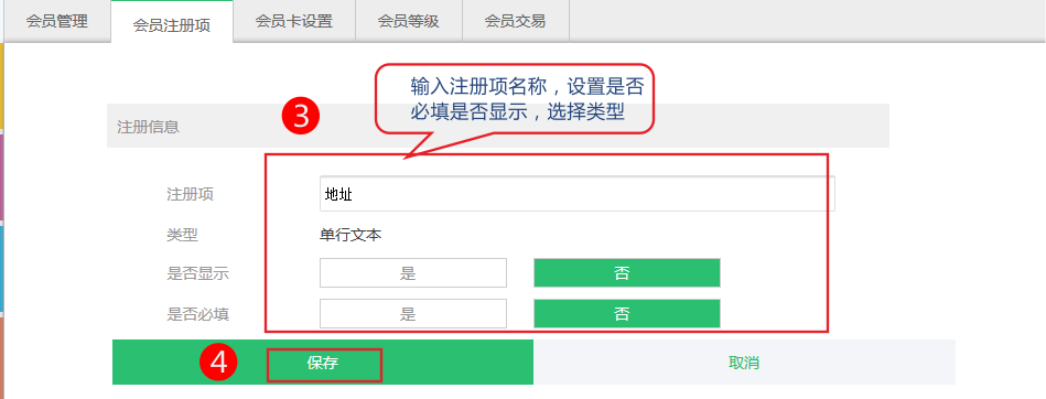 本小节共包含5点。1、通过本部分的操作,您可以有选择的设置会员的个人信息。