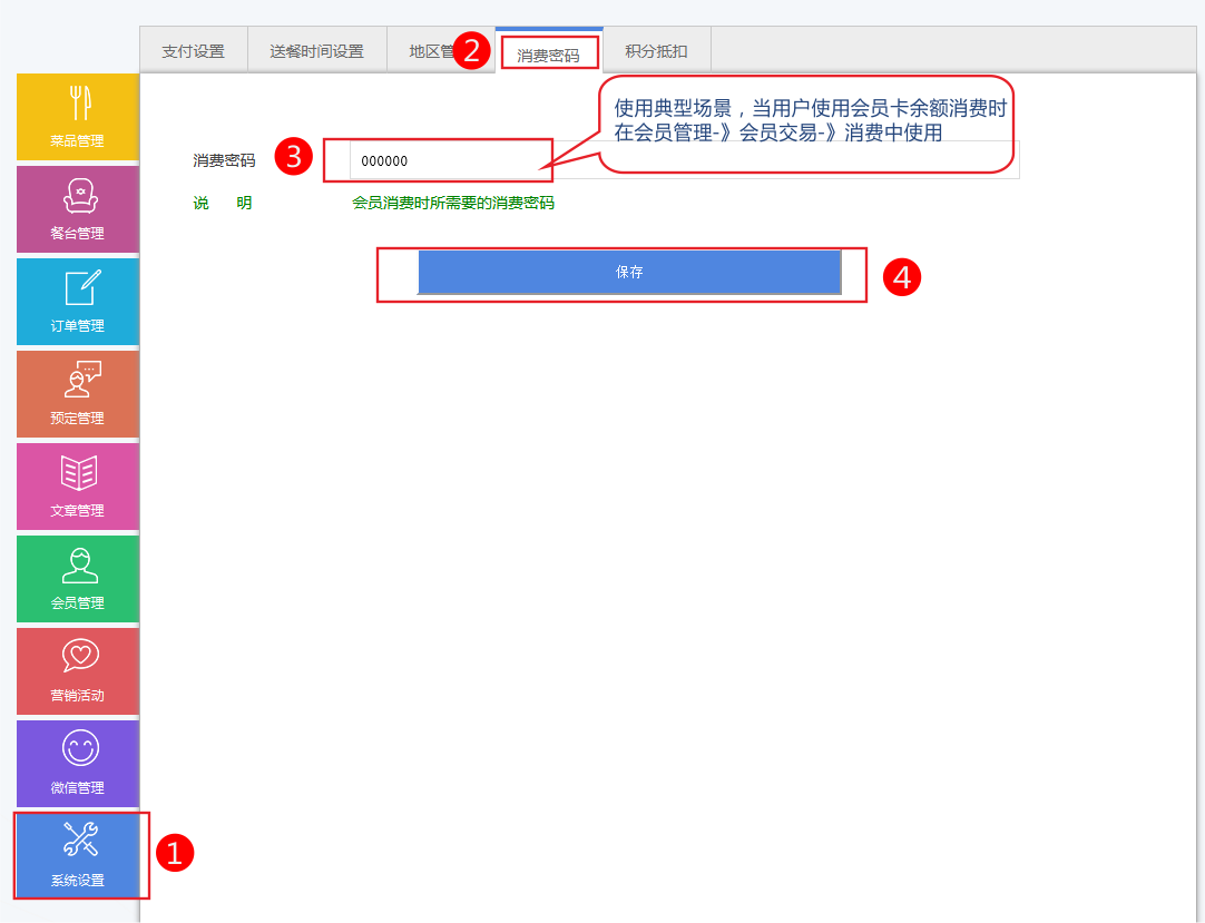 消费密码 在管理员扣除会员会员卡上余额时使用。